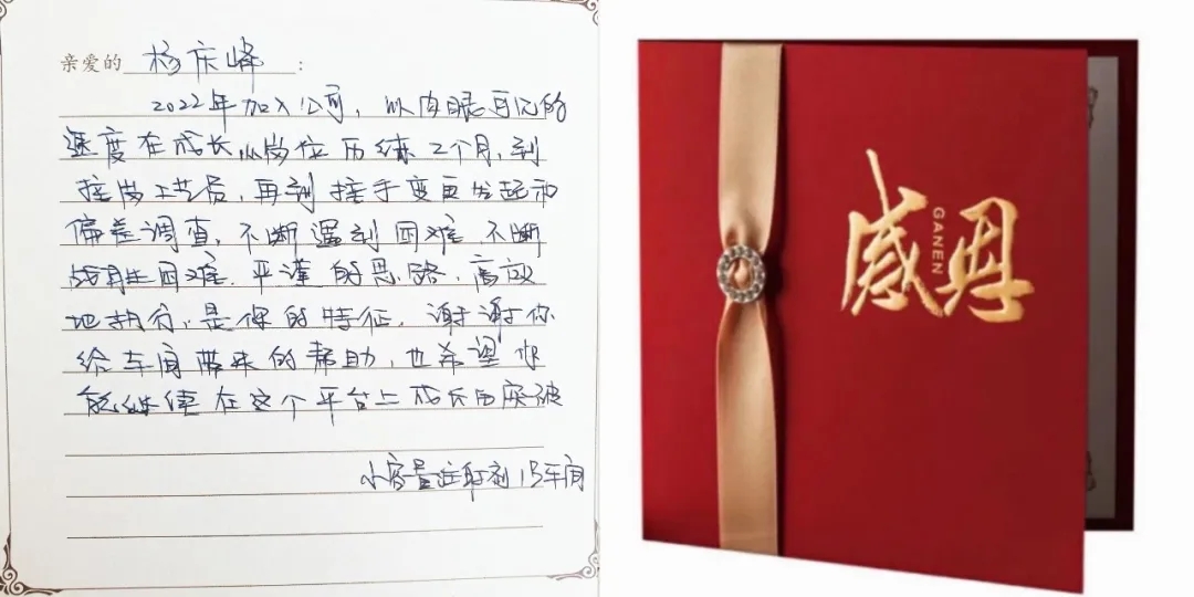 感謝卡:2022年加入公司,以肉眼可見(jiàn)的速度在成長(zhǎng),從崗位歷練2個(gè)月,到接崗工藝員,再到接手變更發(fā)起和偏差調(diào)查,不斷遇到困難,不斷戰(zhàn)勝困難。嚴(yán)謹(jǐn)?shù)乃悸?,高效地?zhí)行,是你的特征,謝謝你給車間帶來(lái)的幫助,也希望你能繼續(xù)在這個(gè)平臺(tái)上成長(zhǎng)和突破。