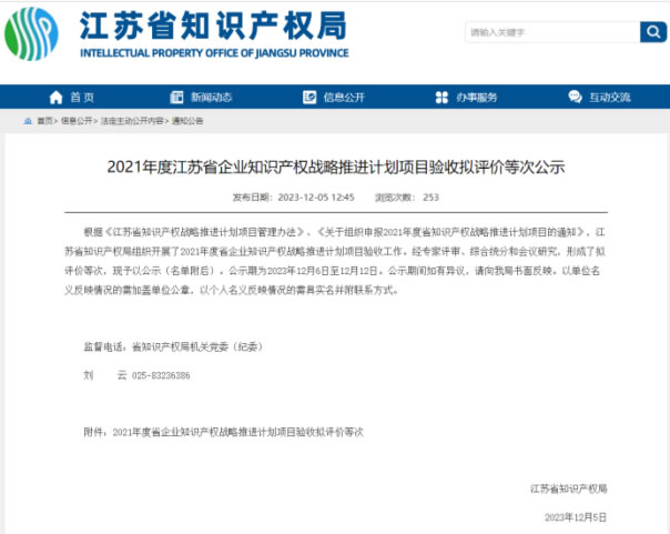 近日,江蘇省知識(shí)產(chǎn)權(quán)局公示了江蘇省企業(yè)知識(shí)產(chǎn)權(quán)戰(zhàn)略推進(jìn)計(jì)劃項(xiàng)目驗(yàn)收擬評(píng)價(jià)等次名單,南京海陵成功通過項(xiàng)目驗(yàn)收,為企業(yè)高質(zhì)量發(fā)展奠定基礎(chǔ)。